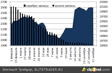 Фактор продолжения QE в прежнем объеме в течении как минимум полугода ― явный позитив для драгоценных металлов. В таких условиях весьма вероятно повышение инвестиционного спроса, который в конце октября пока демонстрирует противоречивую динамику. Если продажи Американского монетного двора растут, то запасы золотых ETF продолжают сокращаться.