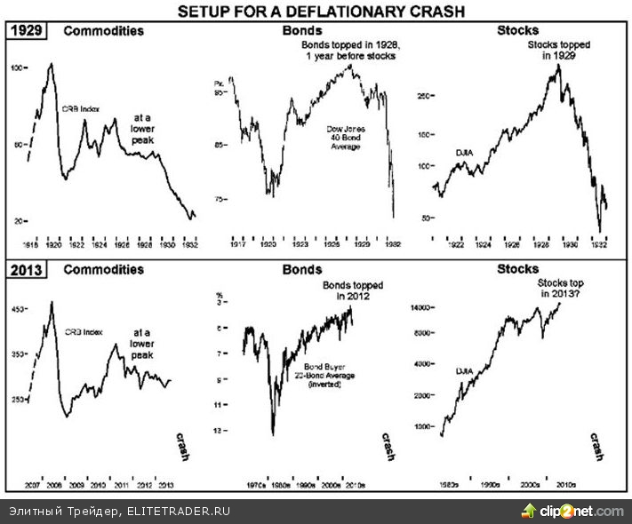 Все готово к дефляционному краху: сценарии 1929 и 2013 гг в ресурсах, облигациях и акциях.