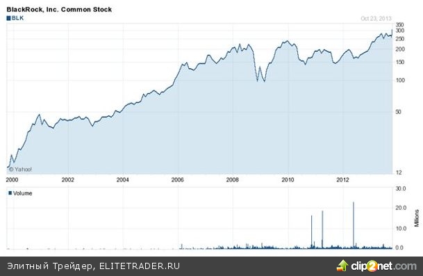 Да, можно предположить, что основной причиной невероятных результатов Blackrock стало удачное приобретение Barclays Global Investors (BGI) в 2009 году за $13,5 млрд наличными и акциями, за счет которого активы, находящиеся под управлением компании, увеличились до $2,7 трлн. Ведь именно после слияния с Barclays Global Investors стало очевидно, что BlackRock представляет коллективные интересы не только американской финансовой элиты, но и мировой, а скачок авторитета в глазах инвесторов, как водится, никогда не помешает.