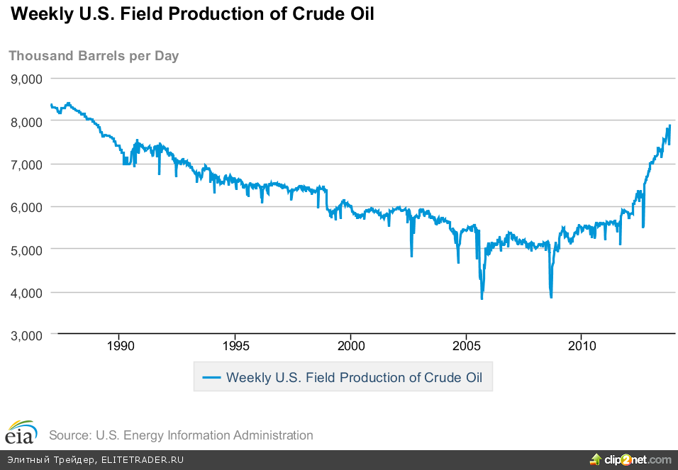 Кроме того на фоне растущей добычи на месторождениях сланцевой нефти внутреннее производство в стране снова обновило максимумы с конца восьмидесятых годов. Согласно полученным данным, добыча в США составляет 7,90 млн. баррелей в день.
