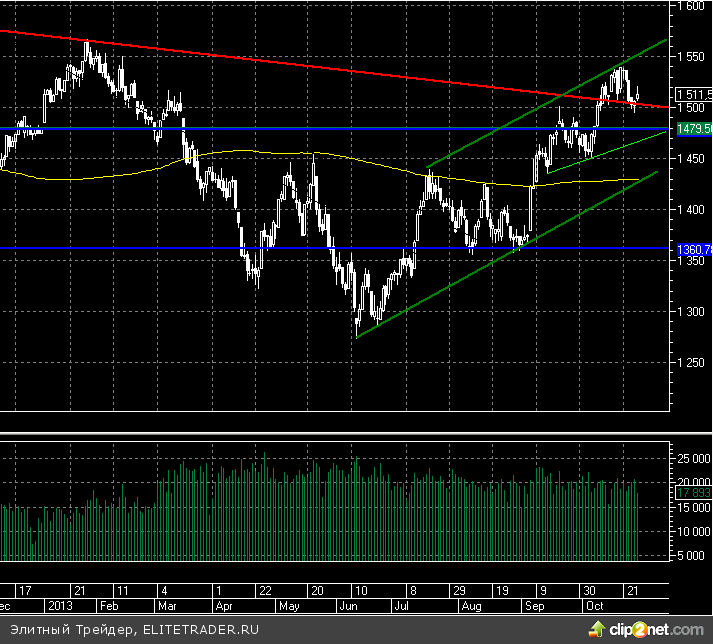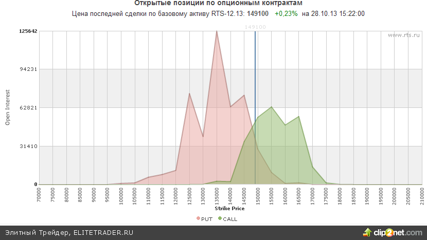 Между тем открытые опционные позиции по RIZ3 со сроком исполнения 15.11.13 сейчас также продолжают находиться в нейтральном состоянии. Большое количество открытых опционов пут расположилось на уровне 145000, а эквивалентное количество опционов колл находится на 155000, что при текущей цене равное 149000 не дает ровным счетом никаких сигналов.