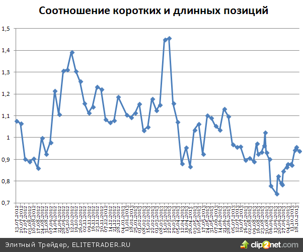 Обратив внимание на открытые юридическими лицами позиции по фьючерсу на индекс, можно заметить, что настроения крупных игроков за прошедшие несколько дней немного изменились в сторону возможного роста, но в целом продолжают находиться в нейтральном состоянии. Соотношение коротких и длинных позиций по данным на пятницу составляет 0,93, против 0,95 двумя днями ранее.