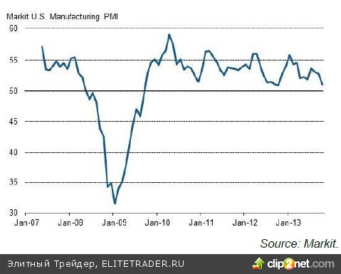 Индекс деловой активности в производственном секторе США выйдет в 18.00 по мск. Предыдущее значение: 51.1. Прогноз:51,1.
