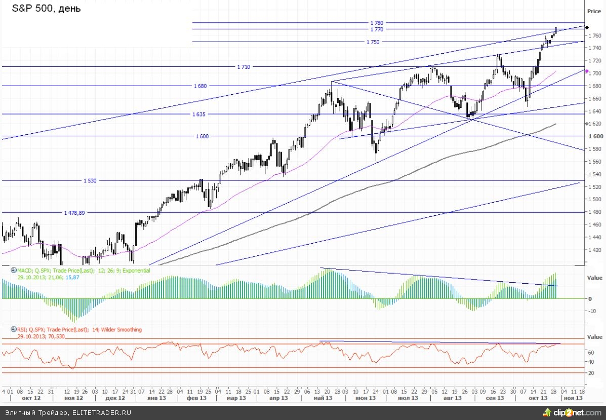 В данный момент фьючерсный контракт на SP500 торгуется с понижением всего на 0,01% около отметки 1767.