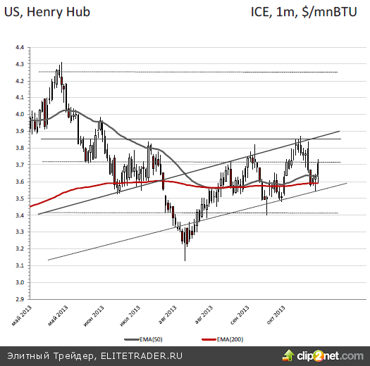 Резко скорректировавшись после активного роста, котировки нашли опору в виде нижней линии восходящего тренда августа-ноября, и на протяжении этой недели, как мы ожидаем, будут тестировать ее силу. Плавный рост представляется вполне вероятным вариантом - ближайшие цели восстановления представлены 14- и 50-дневними EMA на $3,65, да и в целом район $3,65-3,75 выглядит сильным центром притяжения на среднесрочную перспективу.
