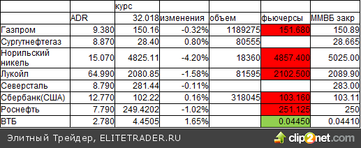 ADR в США 30.10 (Северсталь, Роснефть, ВТБ в Лондоне ) и закрытие вечерних фьючерсов в России Цветами (или знаками +-) далее изображен характер разницы по сравнению с закрытием вечерних фьючерсов ночью накануне. Евро/доллар))1.3712 в 7.54 четверга))1.3737 в 7.59 среды ))1.3776 в 8.09 вторника))