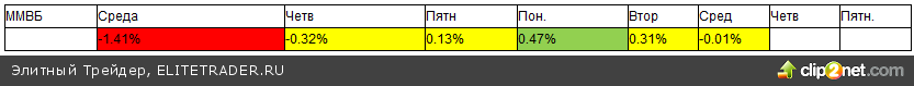 Сочетание среднесрочных показателей указывает на спад позитива ( при росте позитива долгосрочных показателей), 25 октября объявляется мягкое (умеренное) продавать в среднесрочных рекомендациях (на неделю и больше) (при сопротивлении ММВБ 1538 и возможной целью 1485),24 октября объявляется пауза в рекомендациях, 23 октября объявлялось мягкое (умеренное) продавать в среднесрочных рекомендациях (на неделю и больше) (при сопротивлении ММВБ 1552), 21-22 окт объявлялась паузу в среднесрочных рекомендациях, 18 октября объявлялось мягкое (умеренное) продавать в среднесрочных рекомендациях (на неделю и больше) (при сопротивлении ММВБ 1537 и возможной цели 1487), с 16 окт. по 17 окт объявлялась пауза в среднесрочных положительных рекомендациях из-за перекупленности индекса ММВБ.