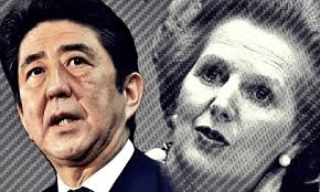 Будучи в Лондоне в июне этого года, Абэ процитировал Тетчер в контексте своей стратегии экономического роста: "У нас нет другого выхода" - бывший премьер министр Великобритании использовала эту фразу, говоря о своей политике монетаризма, финансового дерегулирования и реструктуризации государственной промышленности Британии в 1980-х годах. Буквально за семь лет политика Тетчер привела к росту безработицы до рекордных уровней (за бортом рынка труда остались более трех миллионов человек); между богатыми и бедными разверзлась глубокая пропасть. Но в то же время ее политика помогла избавить людей от чувства постоянного падения, достигшего апогея зимой 1979 года, когда по стране прокатилась волна забастовок различных социальных групп - от учителей до железнодорожных рабочих - а страна погрузилась в кризис. Годовой рост ВВП достиг пика в первом квартале 1988 года на уровне 6.6%.