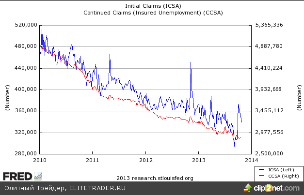 Недельные данные по заявкам на получение пособий по безработице указали на снижение показателя до 340 тыс., аналитики ожидали снижения до 339 тыс. Число продолжающих получать пособия выросло на 31 тыс. до 2,88 млн.