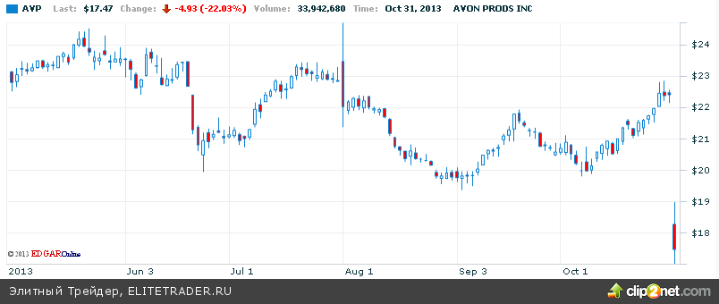 Среди отдельных бумаг отметим, рост в акциях Facebook на 2,44%, которые вчера потрепало на постмаркете, когда цена в моменте росла на 18%, но к закрытию растеряла весь рост. Эпичная просадка на 22% наблюдалась вчера в акциях отчитавшейся косметической компании Avon, зафиксировавшей чистый убыток в $5,5 млн., или 1 цент на акцию. Скорректированная прибыль составила 14 центов на акцию, не дотянув до прогнозных 19. Продажи упали на 7,5% до $2,32 млрд. Многолетние разбирательства с коррупционным скандалом в Китае, грозят Avon значительно большими штрафами от SEC чем ожидаемые $12 млн.