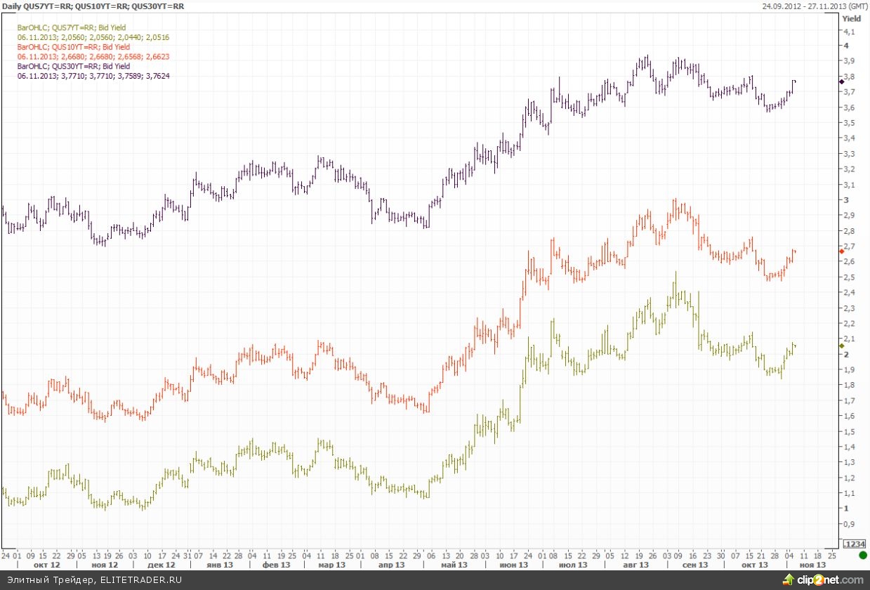 Весьма любопытная динамика с учетом октябрьского shutdown, последствия которого казалось бы вынуждают в свою очередь Федрезерв сохранять стимулирующую политику в прежнем объеме. Теперь инвесторы будут ожидать главных цифр за октябрь - отчет по рынку труда, публикуемый в конце текущей недели. Хотя до того момента выйдет оценка динамики ВВП в третьем квартале.
