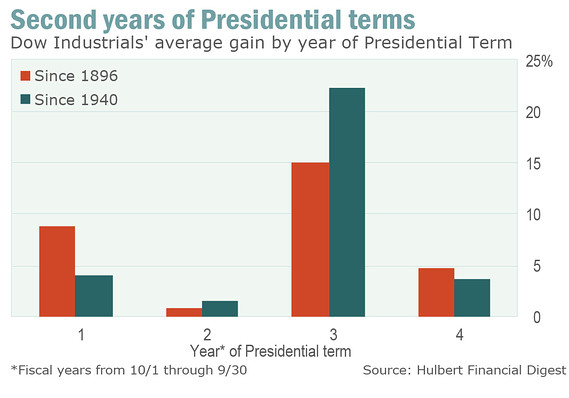Не все сезонные тренды позитивны для фондового рынка. Важно помнить об этом в данный момент, так как сезонный характер изменений Halloween Indicator приковывает всё больше внимания в последние дни: он превратился в бычий на прошлой неделе. В бычьем изобилии, преобладающем на Уолл-Стрит, большинство инвесторов, похоже, совершенно забыли о годовом цикле президентских выборов, в рамках которого фондовый рынок сталкивается с перевесом слабых данных во второй президентский срок.