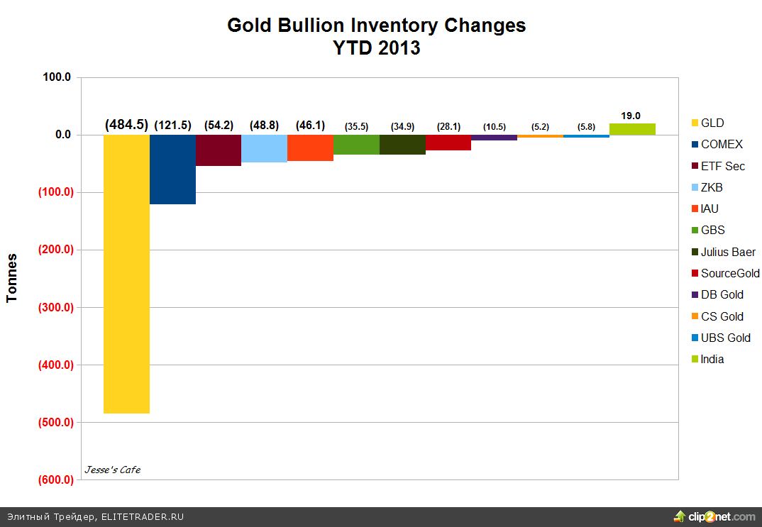 Но абсолютно замечательно то, что с начала года биржа Comex и некоторые крупные индексные фонды ПОТЕРЯЛИ около 856 т золота. И я подозреваю, что большая часть этого металла ушла в не публикующие отчеты хранилища Азии и Ближнего Востока. Есть данные по импорту/экспорту, подтверждающие эту гипотезу.