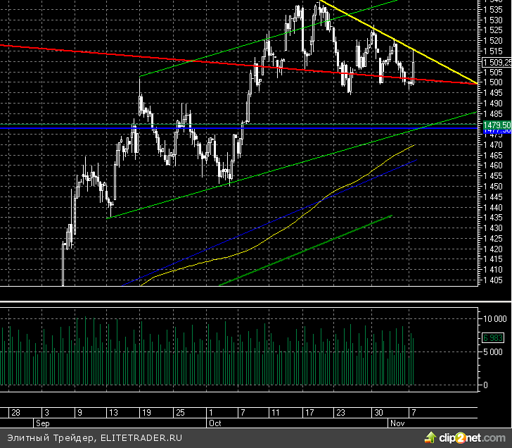 Сейчас наиболее вероятным является все-таки пробой 1500 с последующим уходом на 1480.