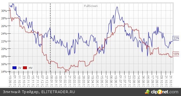 Напомню, подразумеваемая волатильность устанавливается самими участники торгов и обычно классифицируется как индикатор страха.