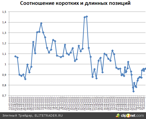 Обратив внимание на открытые юридическими лицами позиции по фьючерсу на индекс, можно заметить, что настроения крупных игроков за прошедшие несколько дней сменились в сторону покупок. Соотношение коротких и длинных позиций на 6 ноября составляет 0,9 против 0,95 в прошедшую пятницу.