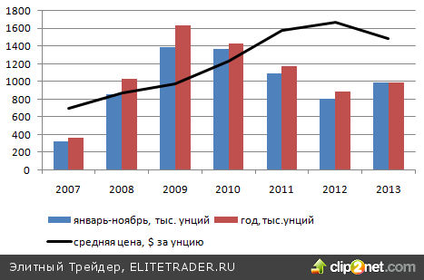 На динамику Gold Investor Index накладывает отпечаток ситуация в сфере продажи золотых монет Американским монетным двором. По итогам января-октября текущего года общий объем реализации монет Eagle и Buffalo превысил итоговые показатели прошлого года. Однако уровней 2010-2011 годов, вероятнее всего, достигнуть не удастся.