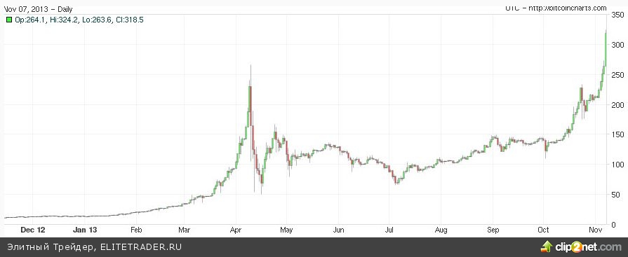 Электронная валюта Bitcoin бьет все рекорды. Вчера котировки валюты в очередной раз подскочили, достигнув отметки $324. Взлет произошел после того, как ЕЦБ объявил о снижении процентной ставки, а Марио Драги прокомментировал ситуацию в экономике еврозоны.