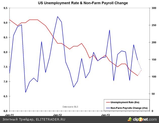 Когда рынок уязвим, можно приводить различные доводы в в пользу антирисковых настроений, вне зависимости от того, будет ли показатель занятости сильным или слабым. Сильное значение отчета по занятости может способствовать росту интереса к риску на фоне предстоящего сокращения объема покупок активов, в то время как слабый показатель может означать антирисковые настроения из-за беспокойства о слабых темпах восстановления экономики. Последний вариант, вероятно, окажет большую поддержку дальнейшей коррекции в кросс-курсах иены.