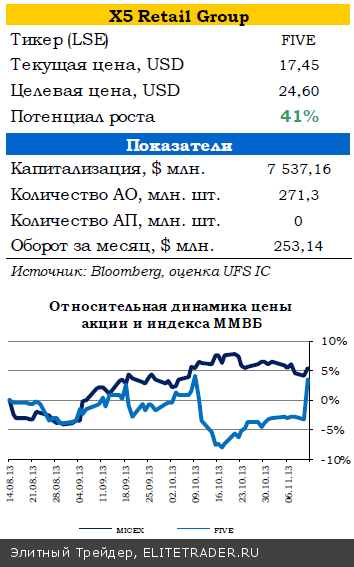 За 3 квартал и 9 месяцев 2013 года чистая выручка X5 увеличилась на 4,3% и 5,9% соответственно по сравнению с аналогичными периодами прошлого года, и составила $3 770,6 млн и $12 152,3 млн.