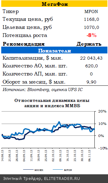 Не думаем, что сообщение вызовет негативную реакцию в бумагах сотовых операторов, так как последствия внедрения MNP уже учтены в котировках. Кроме того, сегодня МегаФон отчитается за третий квартал. Согласно нашим ожиданиям, рублевая выручка оператора покажет рост на 6,0% в квартальном сопоставлении (+7,6% относительно 3К12), что может оказать поддержку акциям МегаФона в ближайшие дни.