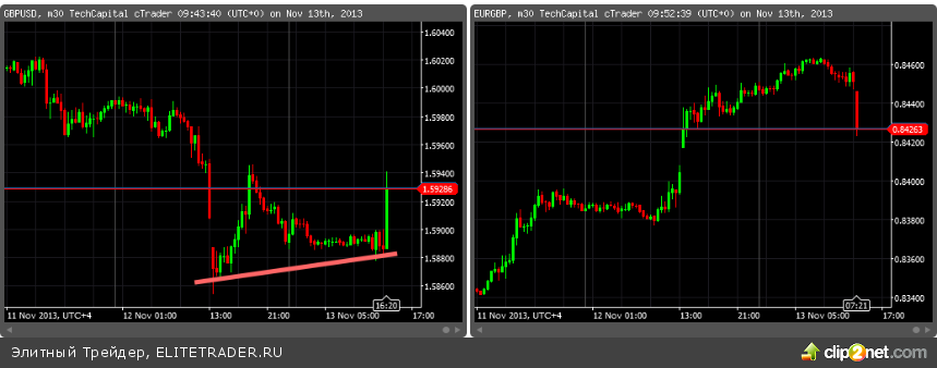 Commerz: продавать EURGBPна коррекциях. Фунт ослаб вчера, так как слабые данные CPI, вышедшие вчера (2.2% против 2.5% ожиданий и 2.7% в сентябре), породили ожидания продолжения мягкой денежно-кредитной политики Банка Англии. Мы считаем, что эта изначальная реакция является неправильной. Снижение инфляции будет только увеличивать реальные доходности Великобритании (которые в любом случае растут, так как британские облигации ходят вслед за американскими treasuries). В то же время, сегодняшний отчет можете обновить прогнозы роста ВВП на 2014 год. Сочетание ослабления инфляции и сильного прогноза экономического роста будет способствовать росту стерлинга. Суть в том, что EURGBP надо продавать на росте.