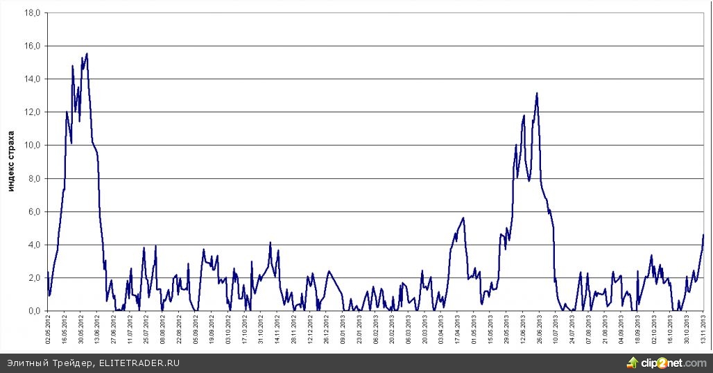 Индекс страха продолжает расти. Сегодня под закрытие 4,6 пункта:
