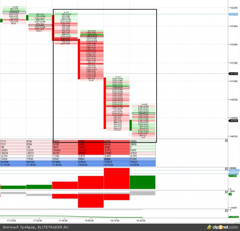 В течение дня наторговали весьма приличные объемы в районе 141 700-142 700 пунктов. И вышли из этой зоны объемов вниз.