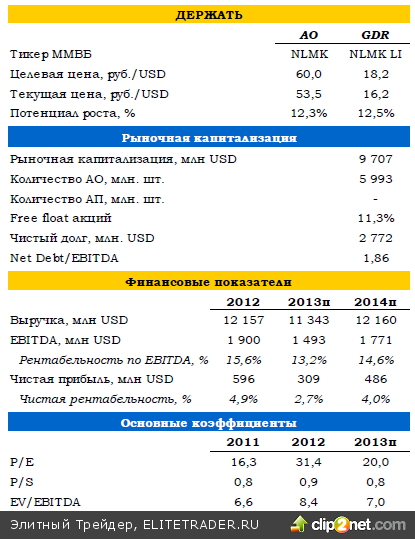 Существенного восстановления в 4К13 НЛМК также не ожидает, делая ставку на сортовой прокат за счет выхода на плановые мощности новой площадки в Калуге.