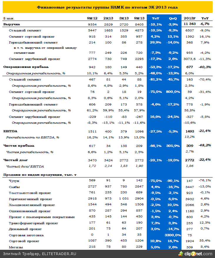 В остальном руководство пока придерживается очень осторожных прогнозов, ожидая сезонного сокращения спроса в 4К13 и показателей на уровне третьего квартала.