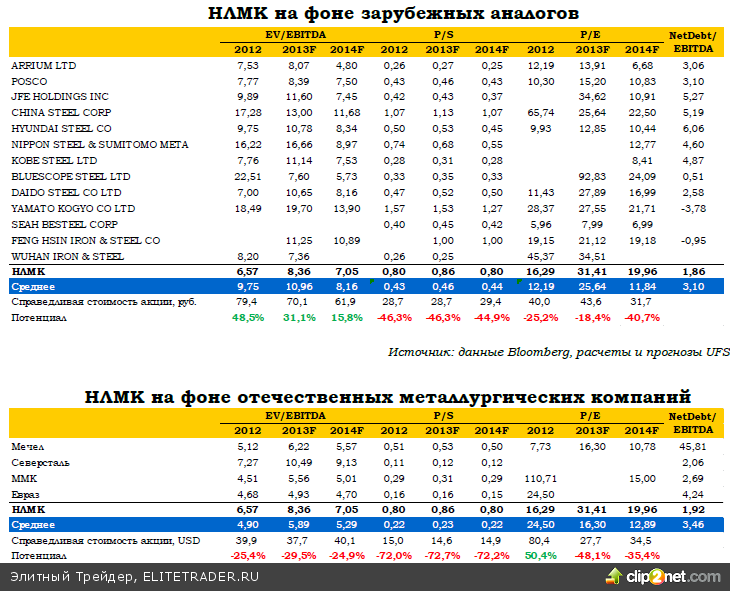НЛМК по-прежнему выглядит дорого на фоне других российских металлургических компаний, за исключением Северстали, что в значительной степени объясняется меньшей долговой нагрузкой и лучшей рентабельностью. Тем не менее, это создает дополнительные препятствия для роста котировок. Негативный момент также заключается в том, что котировки GDR НЛМК вновь стали торговаться с дисконтом к акциям на Московской бирже, что также будет оказывать давление на бумагу.