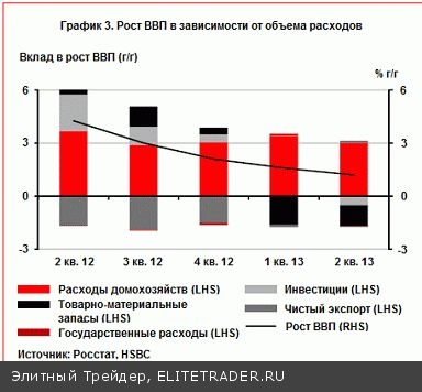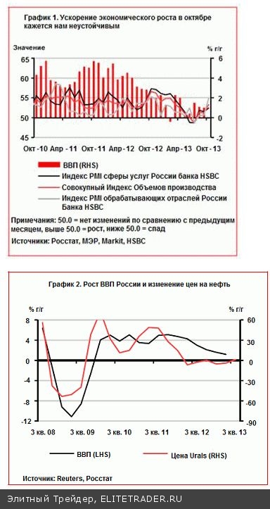 Власти ожидают более высокого экономического роста в 2014 году, однако у них есть сомнения относительно столь смелого прогноза. Министерство экономического развития (Минэкономразвития) считает, что экономический рост в 2014 году поднимется до уровня 3,0% (ЦБ РФ ожидает, что рост составит 2,0%). При этом Минэкономразвития отмечает, что существуют некоторые риски для ухудшения прогноза и нет реальной возможности для его улучшения. Предвидя снижение темпов роста частного потребления (4,0% роста реальной заработной платы в 2014 году против ожидаемых 6,2% в этом году), Минэкономразвития отмечает, что инвестиции в основной капитал восстановятся благодаря эффекту базы (внутренние инвестиции) и более привлекательному инвестиционному климату (прямые иностранные инвестиции). Согласно прогнозам Минэкономразвития, пополнение материально-производственных запасов также поможет стимулировать экономический рост в 2014 году. Однако в то же время Министерство предупреждает о наличии серьезных понижательных рисков для этих прогнозов по росту инвестиций в основной капитал. В частности, программа приватизации будет активирована в России только после 2016 года, это говорит о том, что некоторая часть инвестиций в основной капитал, вероятно, может задержаться.