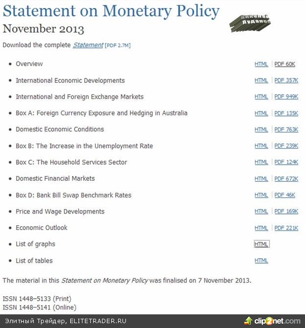 В прошлую пятницу вышло ежеквартальное заявление RBA по монетарной политике.