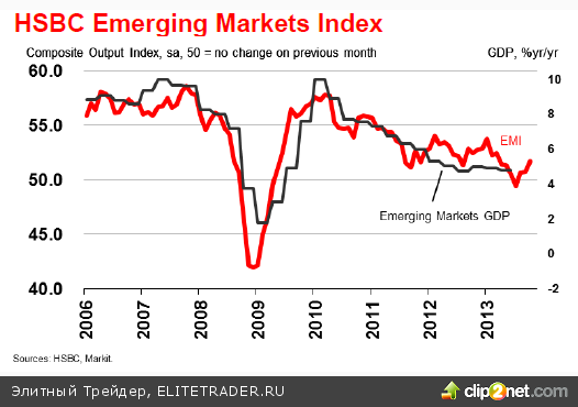 В свою очередь рост экономик развивающихся стран может поддерживаться ростом национальных экономик. На это в частности намекают последние данные по деловой активности.