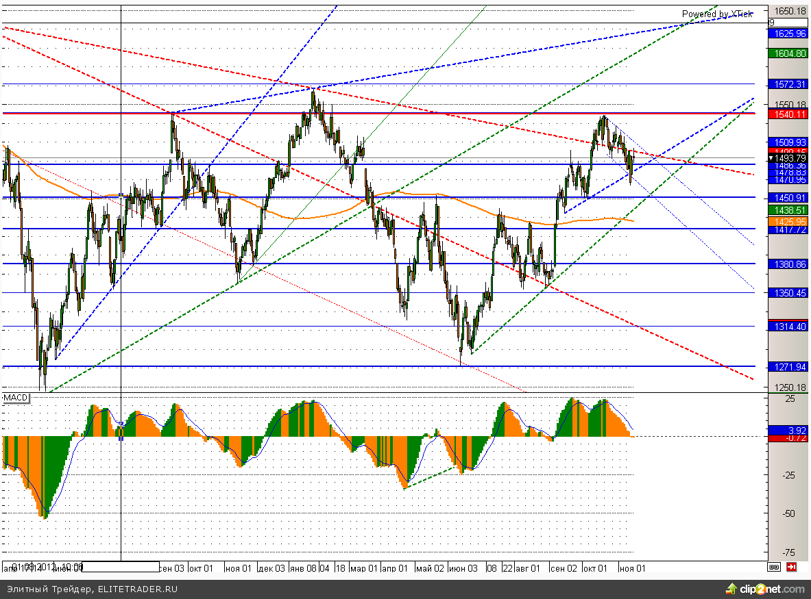 Российский рынок завершил торговую сессию пятницы на положительной территории. При этом ММВБ еще утром отскочил от уровня 1500, где сейчас проходит нисходящая трендовая линия, и теперь может возобновить понижательную динамику.
