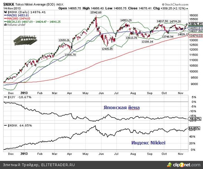 Как видно из рисунка, с начала года Nikkei вырос на 44,8%. Результат абеномики.