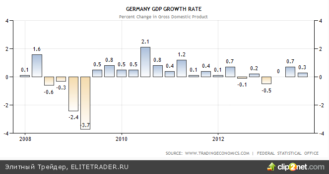 Между тем в этом случае есть небольшая вероятность увидеть рост германской экономики меньше 0,3% за третий квартал. В частности последние данные по промышленному производству и розничным продажам в стране демонстрировали некоторый спад, который, скорее всего, отразиться и на ВВП.
