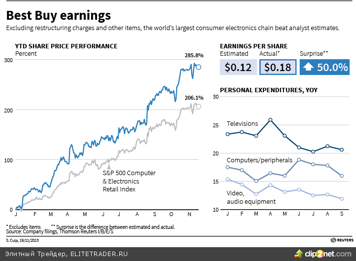 Ее чистая прибыль составила $54 млн., или 16 центов на акцию по сравнению с чистым убытком в $10 млн., или 3 цента на акцию годом ранее. Скорректированная прибыль на акцию составила 18 центов, против консенсус-прогноза Рейтерс на уровне 12 центов. В то же время компания будет вынуждена бороться с конкурентами в предстоящий сезон распродаж, что окажет дополнительное давление на показатели четвертого квартала. Валовая маржа может быть на 0,8%-0,9% ниже, чем в прошлом году.