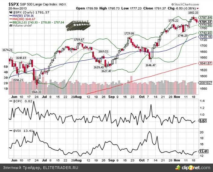 Индекс S&P500 потерял всего 0,32%. Put/call-коэффициент остается бычьим.