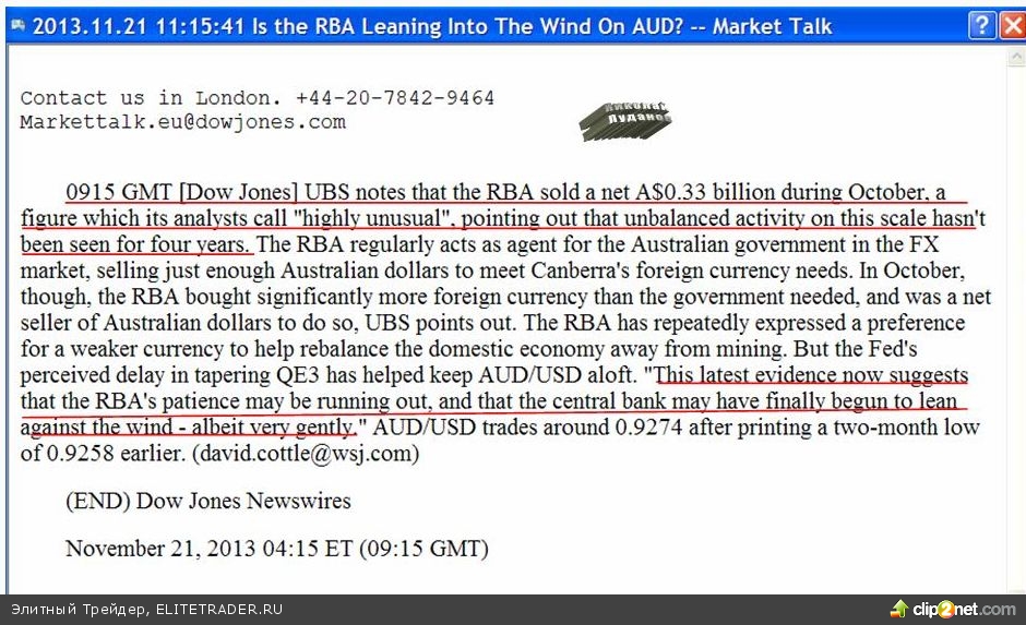 Интересная заметка на ленте терминала, касающаяся австралийского доллара