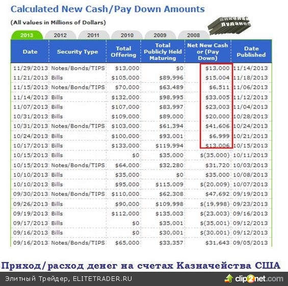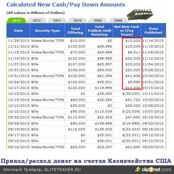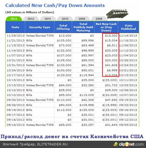 Если суммировать чистый приток денег на счета Казначейства с 17 октября, то получим 172,12 млрд. доллара за 1,5 месяца.