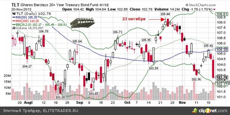 Если посмотреть на график TLT, то совершенно отчетливо видно, что вероятность начала сворачивания программы покупок активов Федрезервом существенно возросла.