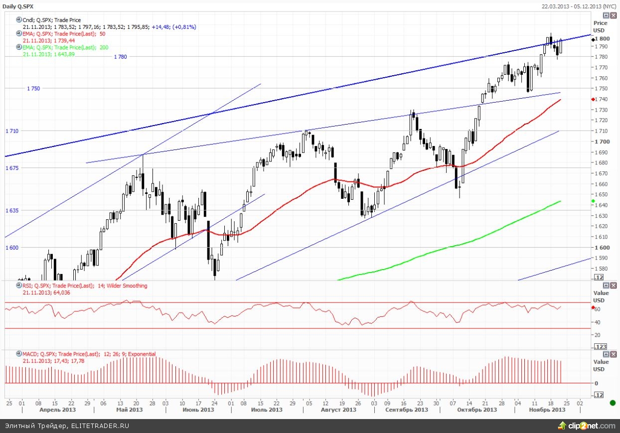 При всем при этом, появлявшиеся причины для фиксации, казались действительно значимыми. Глава ФРБ Нью-Йорка Уильяма Дадли, который является правой рукой председателя ФРС в FOMC, отметил, что надеется на то, что последние экономические данные ознаменуют собой поворотный момент для экономики. Ссылался он при этом на рост ВВП в третьем квартале на 2,8% - максимальными темпами за 4 года и возвращение трехмесячной скользящей средней по приросту рабочих мест к уровню за 200 тыс. Улучшение дальнейших перспектив он связывает с тем, что согласно действующему законодательству, количество федеральных бюджетных ограничений будет снижаться в 2014 году, а в еще большей степени в 2015 году.