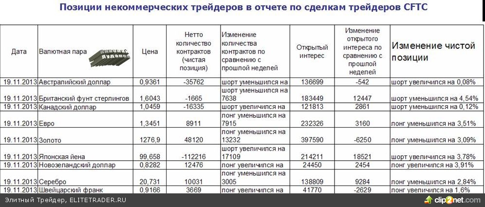В пятницу вышел очередной отчет CFTC за 19 ноября.