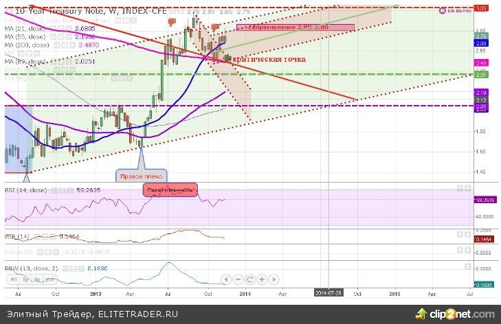 UST-10: недельный график. Экономические показатели не выходят таким образом, чтобы доходность стремилась к снижению. Доходность подросла за прошедшую неделю благодаря также Протоколам ФОМС за октябрь, но не смогла закрепиться выше 2.80%. Боковая структура предполагает не инициировать новых позиций. Те, кто имеют длинные позиции, должны подумать о хеджировании.