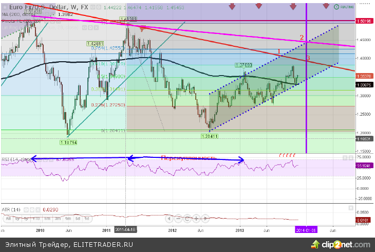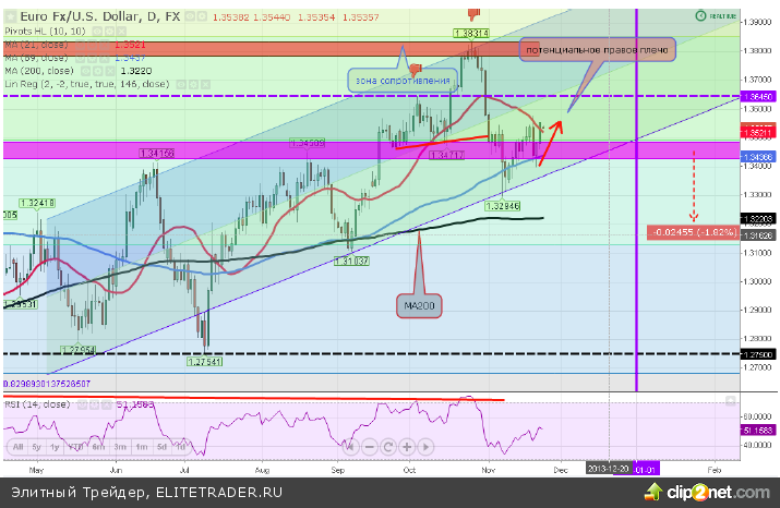 .Фундаментальная чаша весов склоняется в пользу доллара, исходя из перспектив тейперинга и дефляционного давления в еврозоне. Единственное, что может сдерживать евро это положительный торговый баланс, но структура показывает слабость на стороне спроса, что в перспективе негативно для евро.