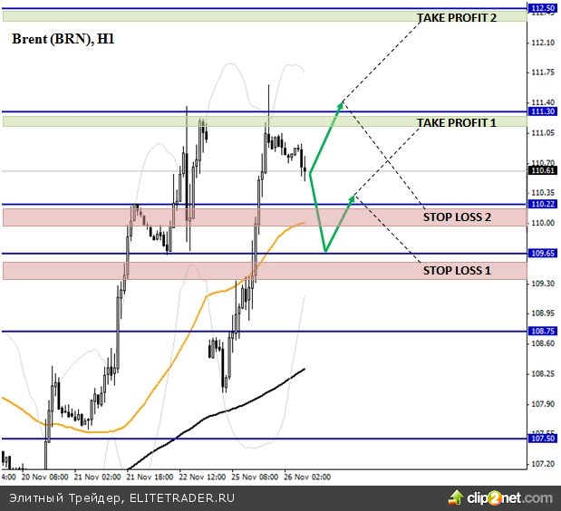 С точки зрения технического анализа важно отметить, что область сопротивления 111,30 – это максимальное значение с сентября, которое было достигнуто ценами после того как из нее стали дисконтироваться риски связанные с Сирией. Для движения вверх выше этой отметки необходимы дополнительные фундаментальные предпосылки. Выделить таковые сейчас сложно, но поддержку может оказать позитивная динамика фондовых индексов. В случае преодоления сопротивления 111,30 целью движения станет область 112,50. Интересен Brent может быть и для покупок на относительно низких уровнях.
