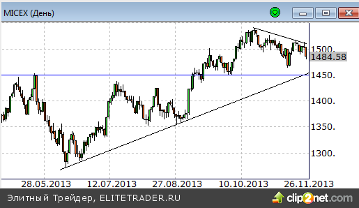 В рамках летнего восходящего тренда развивается локальный контртренд. Накануне его линия предложения была использована для продаж. Таким образом, складываются предпосылки к тестирования зоны 1460-1450 пунктов, в районе которой проходит линия спроса текущего аптренда.