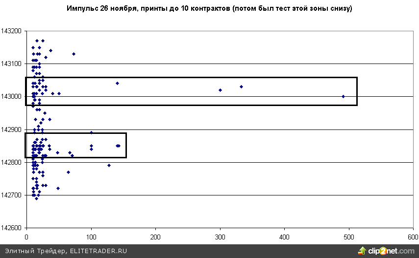 Основное скопление ордеров на данном импульсе было в районе 142 900 — 143 000 пунктов. Внутри дня этот уровень уже 1 раз был протестирован, после чего снижение внутри дня возобновилось.