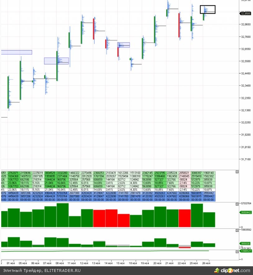 Газпром сегодня прилично просел — аж на 6 рублей, Сбербанк — на 2,3 рубля. Основные объемы, которые набивались там последние дни остались пока вверху. Набор объема внизу пока в существенной мере еще не происходил.